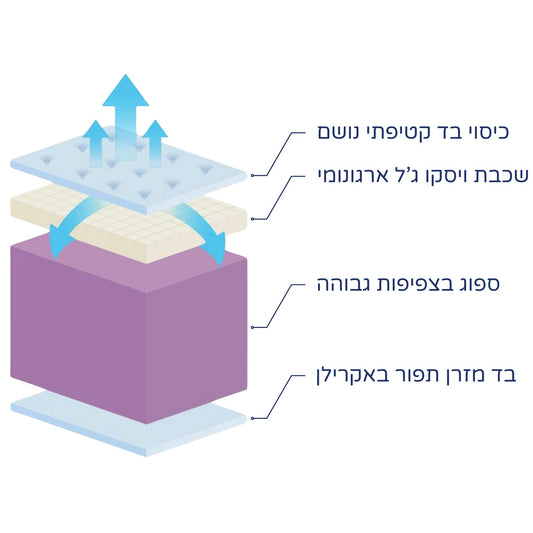 מזרן ספוג אורטופדי בעל שכבת ויסקו-טופ, השומרת על עמוד שדרה ניטרלי על ידי יצירת איזורים ארגונומיים תחת הכתפיים, הירכיים והגב התחתון. מומלץ למי שאוהב לישון על הגב או הבטן.